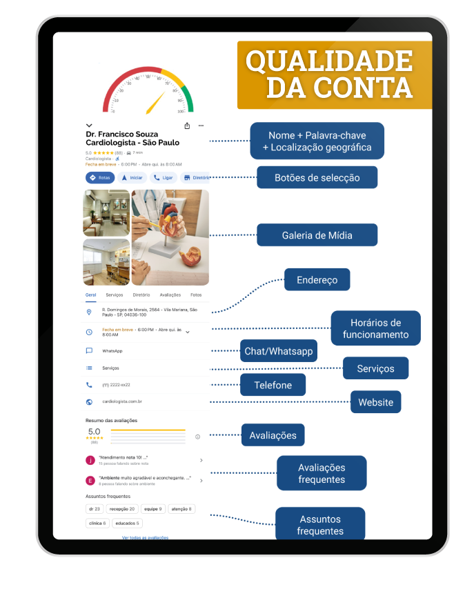 Análise de Qualidade e Saúde do Perfil no Google Meu Negócio.