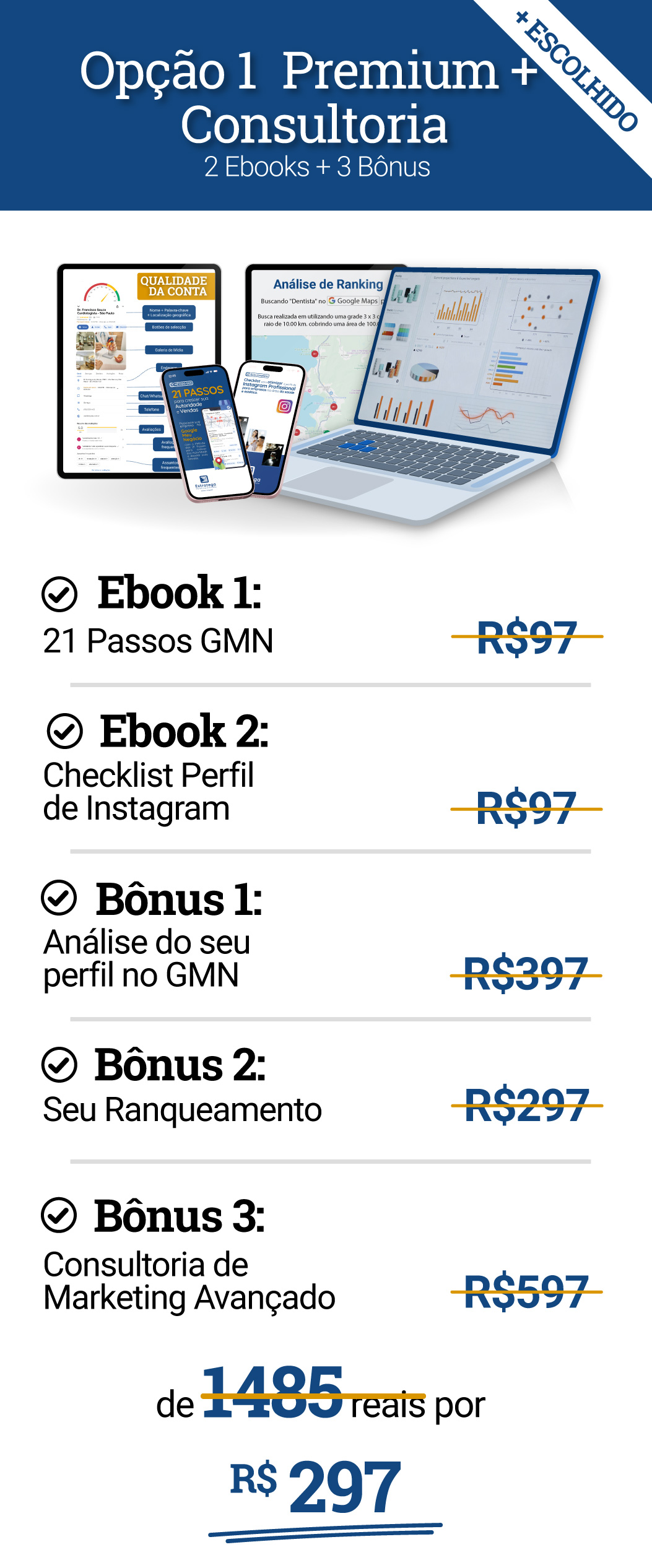 Avalie e melhore continuamente seu perfil para garantir que você esteja sempre atraindo e convertendo novos pacientes.